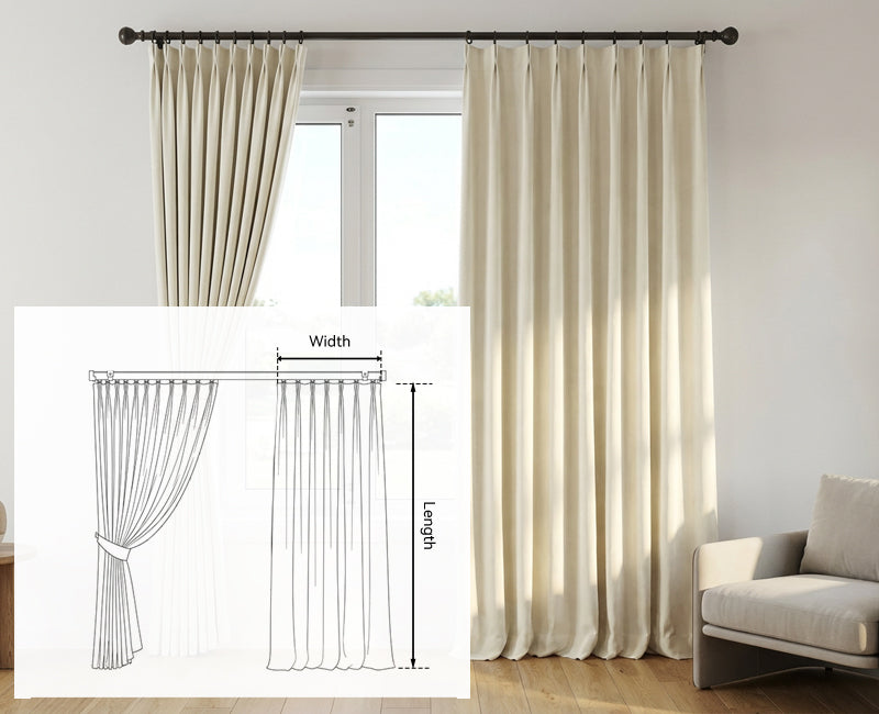 Per Panel Width: Rod or track width x Fullness / Panel Quantity