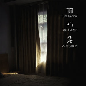 Home 100% Blackout Linen-Weave Textured Curtains